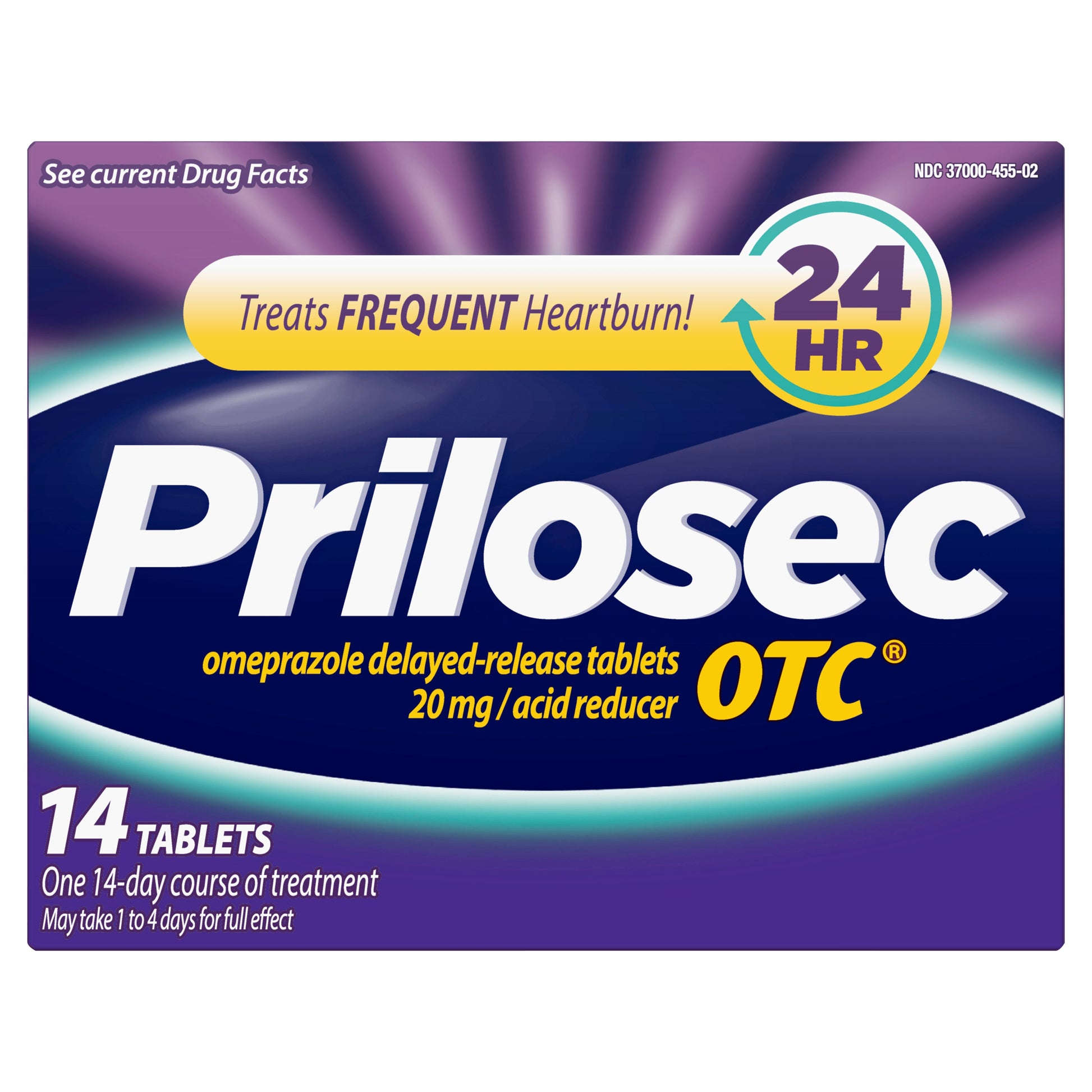 With one Prilosec OTC 14 count tablets pill in the morning block your heartburn all day and all night.* Heartburn happens when stomach acid refluxes into the esophagus. Prilosec OTC s delayed-release formula helps it pass through the tough stomach acid preventing excess acid production to block frequent heartburn.* Some other heartburn relief treatments only neutralize the stomach acid after it s already been produced and provide shorter relief (less than 24 hours). Prilosec OTC is the #1 Doctor and Gastroenterologist recommended frequent heartburn medicine for 15 straight years.^ * It s possible while taking Prilosec OTC. Proton Pump Inhibitors like Prilosec OTC work differently to treat frequent heartburn for 14 days. Compared to how antacids and H2 blockers work for heartburn. Use all heartburn medications as directed. Do not take for more than 14 days or more often than every 4 months unless directed by a doctor. Not for immediate relief.