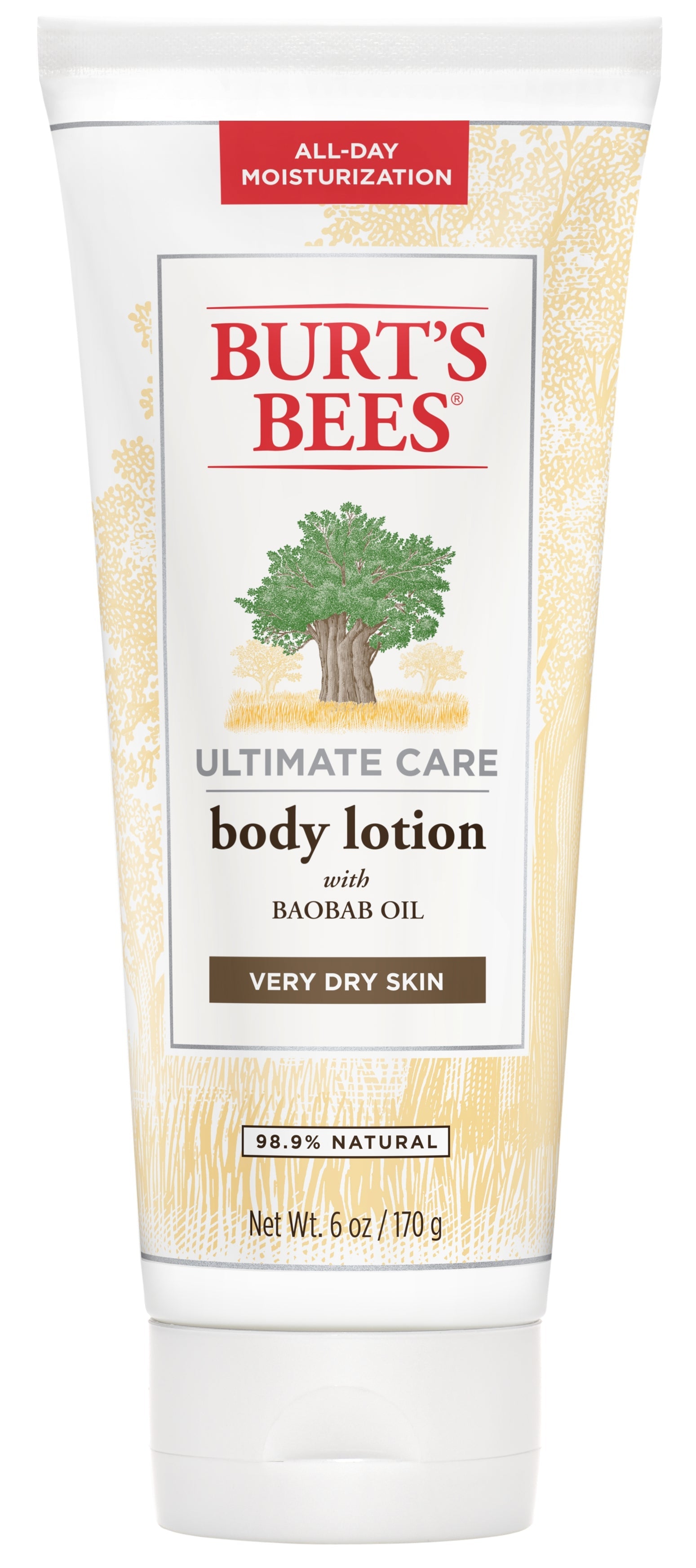 Burt s Bees Ultimate Care Body Lotion is the perfect moisturizer for extremely dry skin. Infused with a combination of nourishing baobab oil nutrient-rich pumpkin seed oil and lightly scented with green tea extract. This quick absorbing body lotion is clinically shown to provide all day moisturization to even the driest skin. It nourishes your skin leaving it soft and fully hydrated. Its dermatologist-tested hypoallergenic and contains no added fragrance. Put the power of nature to work for you with Burt s Bees.